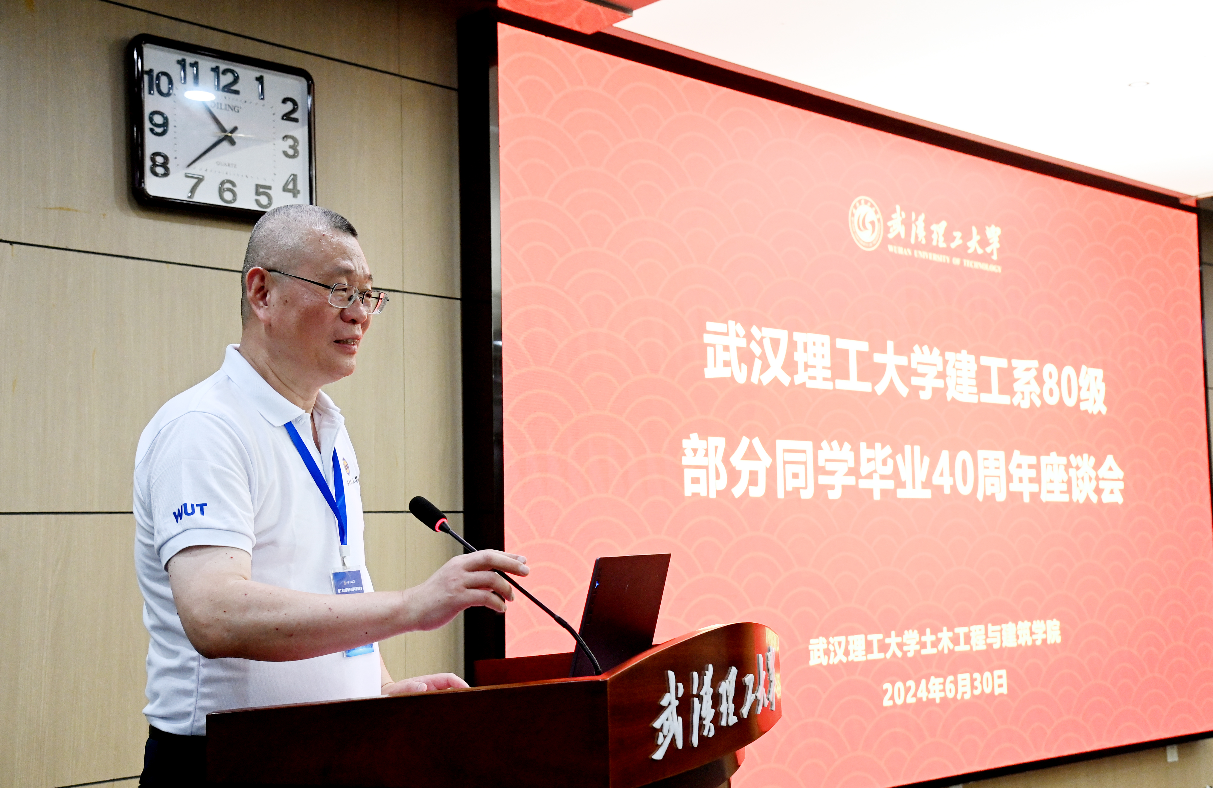光阴流转,授业之恩难忘;尺素寸心,师生情谊弥深。老教师代表卢哲安老师回忆了四十年前的校园生活,他为同学们从过去懵懂的少年变成如今经过40年实践检验的优秀武汉理工人而感到无比高兴与自豪。他表示,希望同学们之间的同学情,与老师们的师生情,能历久弥新、天长地久。